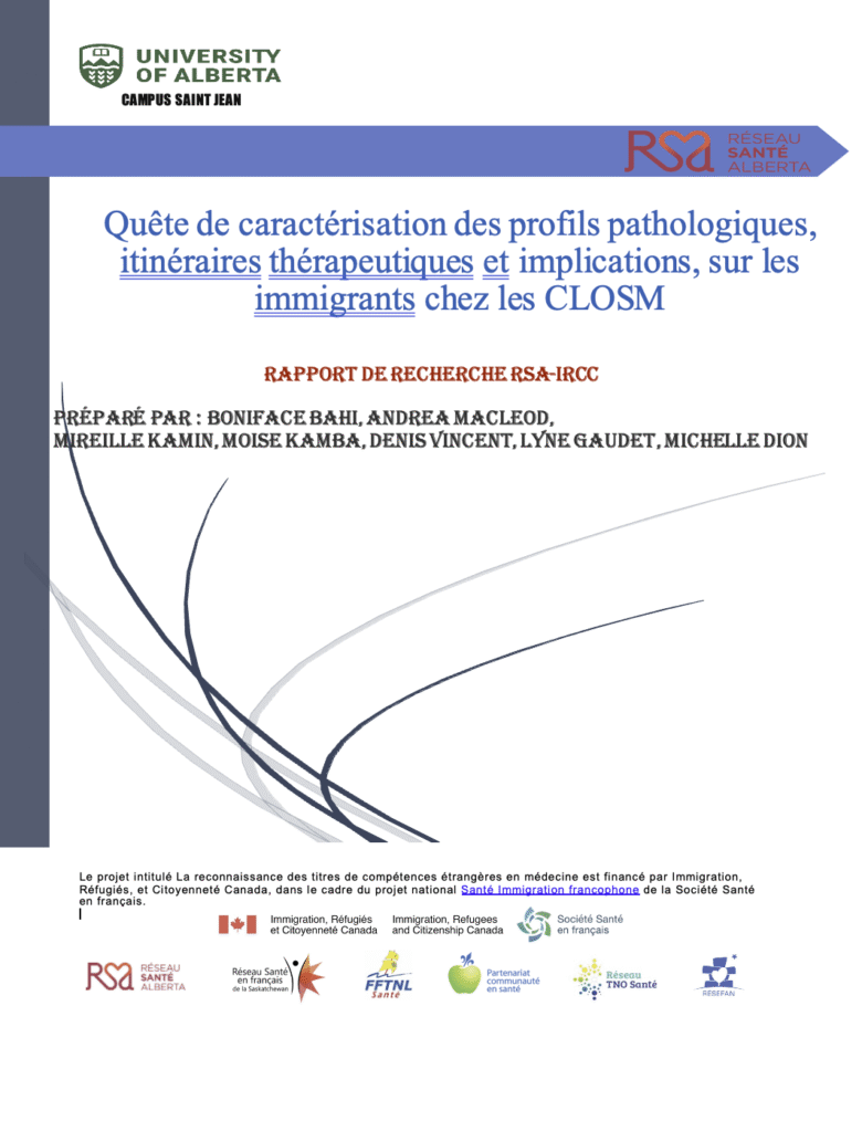 Rapport de recherche RSA – IRCC Quête de caractérisation des profils pathologiques, itinéraires thérapeutiques et implications, sur les immigrants chez les CLOSM